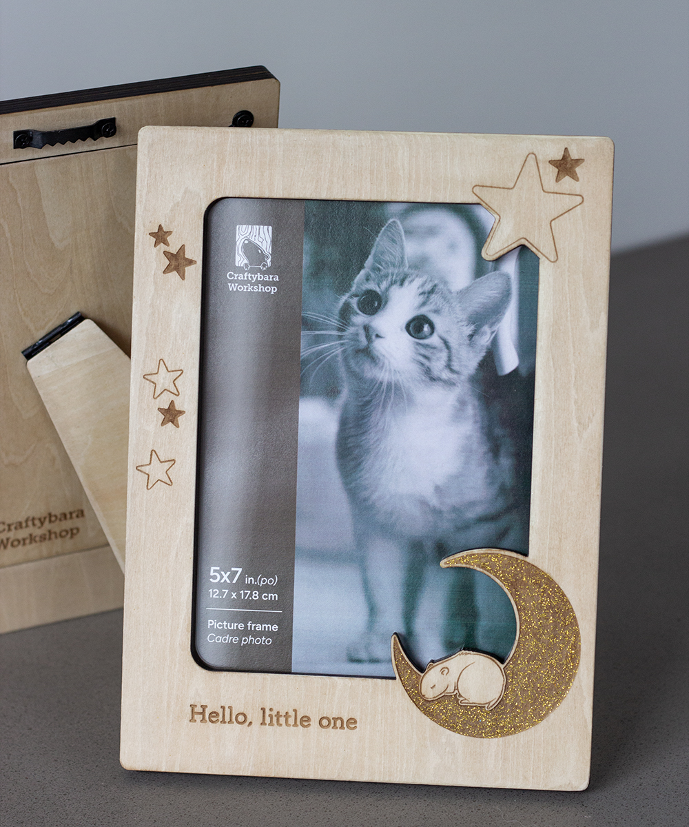 Wooden picture frame, fits one picture size: